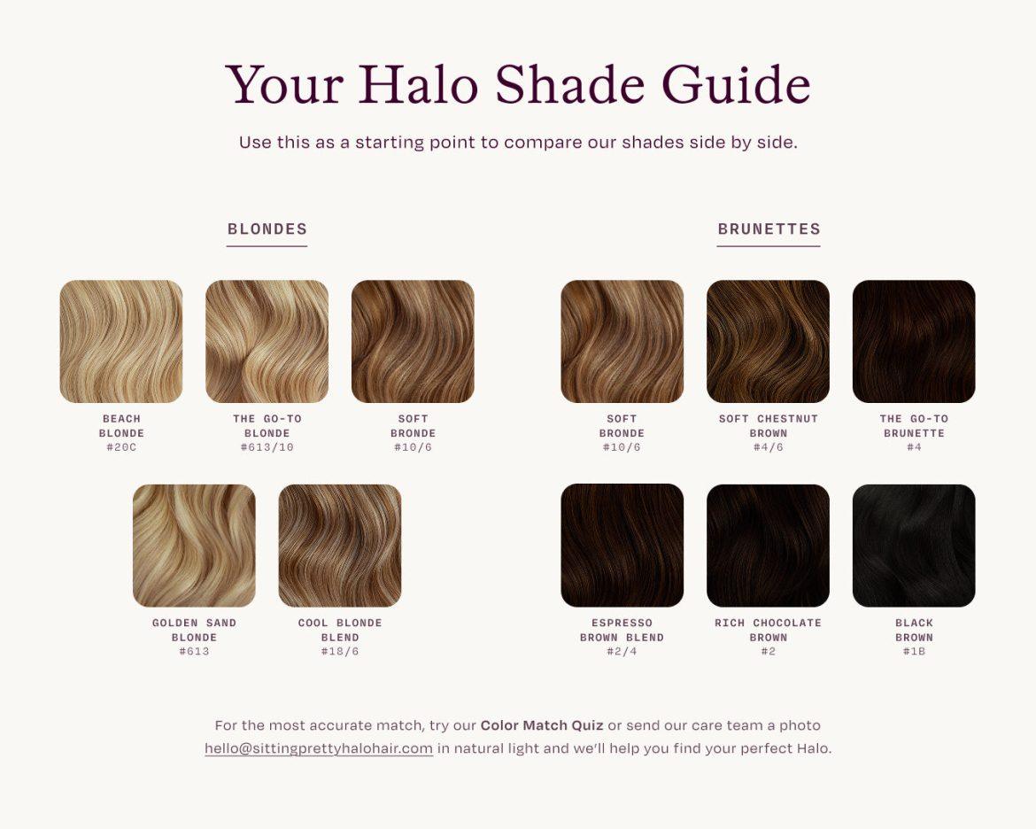 For the most accurate results, we always suggest taking our Color Match Quiz or sending a photo of your natural hair (in natural daylight) to our care team at hello@sittingprettyhalohair.com. Our experts will help you pinpoint the perfect match so you can feel confident before you buy.